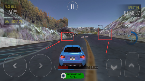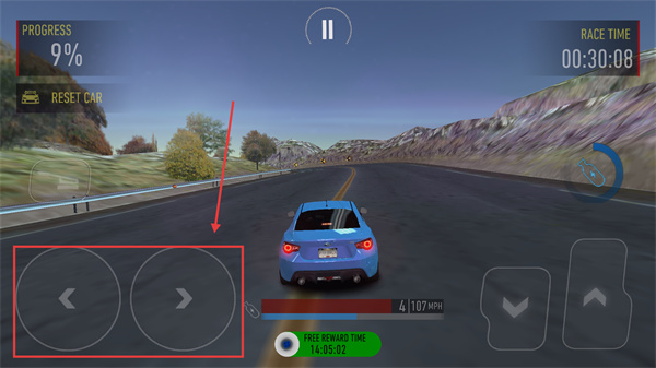 2、使用左右方向按鈕,調(diào)整車輛行駛方向,在彎道處精準(zhǔn)轉(zhuǎn)向,避免偏離賽道。