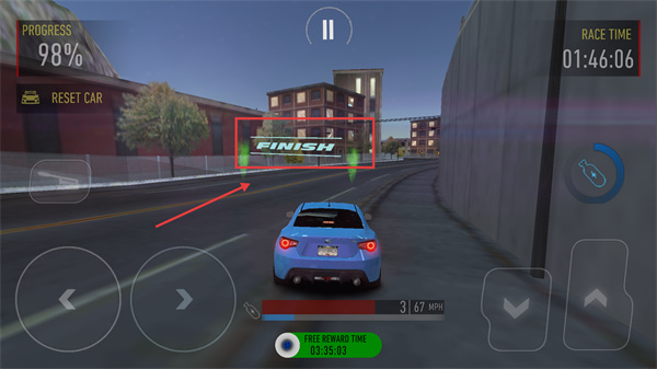 3、緊盯終點線,保持車輛行駛方向,平穩(wěn)通過終點,完成比賽挑戰(zhàn)。
