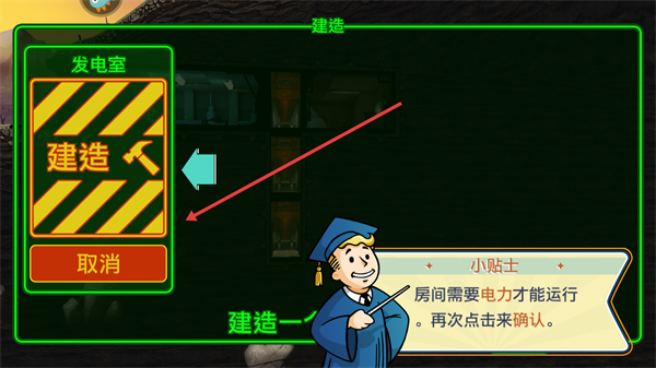 4、確認(rèn)建造發(fā)電室,完成后可為避難所提供電力,支持其他房間的運(yùn)行,推動(dòng)避難所的發(fā)展。
