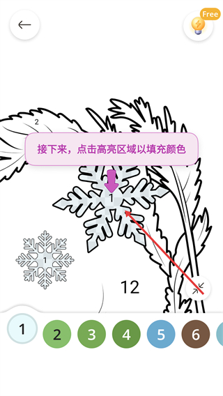 3、提供數(shù)字指導功能,可跟隨指引為黑白圖案填充顏色,逐步將單調(diào)畫面變得繽紛鮮艷,體驗創(chuàng)作的成就感。