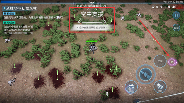 4、到達標(biāo)記地,拾取地上的紫色補給物,提升等級。