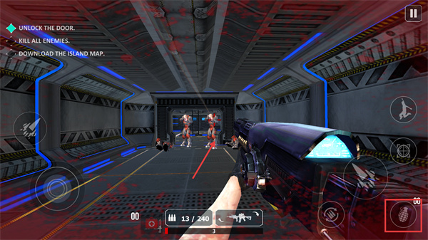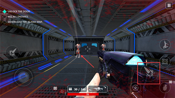 3、利用武器射擊功能,瞄準敵人進行攻擊,有效對敵人造成傷害,清除戰(zhàn)場敵人。