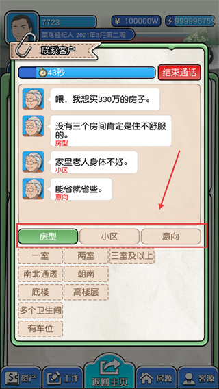 3、搭載豐富多樣的劇情內(nèi)容,情節(jié)設(shè)計(jì)貼合房產(chǎn)銷(xiāo)售實(shí)際,玩家可自由體驗(yàn),感受劇情與經(jīng)營(yíng)結(jié)合的樂(lè)趣。