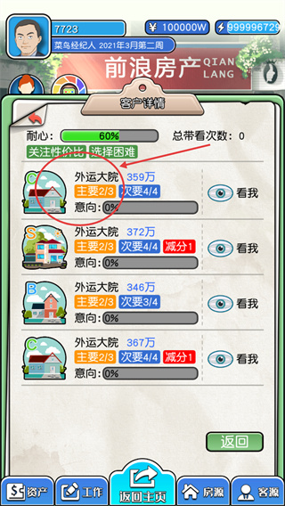 3、游戲過(guò)程中能系統(tǒng)了解各類(lèi)房子類(lèi)型與客戶(hù)意向信息,幫助玩家快速掌握房產(chǎn)行業(yè)基礎(chǔ)認(rèn)知,實(shí)用性強(qiáng)。