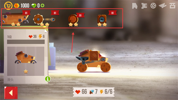 1、選擇并裝配車輛部件,如車身、車輪、武器等,提升車輛的戰(zhàn)力屬性,為對戰(zhàn)做好準備。