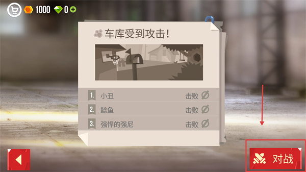 2、點擊【對戰(zhàn)】,進入戰(zhàn)斗模式,挑戰(zhàn)車庫攻擊者,通過戰(zhàn)斗獲取獎勵和經(jīng)驗。
