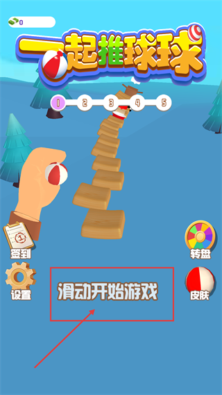 1、進(jìn)入【一起推球球】游戲后,滑動(dòng)【滑動(dòng)開始游戲】區(qū)域,即可開啟游戲挑戰(zhàn)。