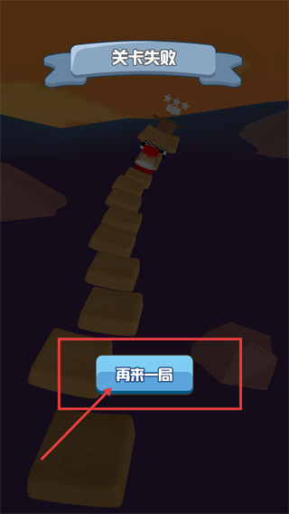 4、若出現(xiàn)【關(guān)卡失敗】,點(diǎn)擊【再來(lái)一局】按鈕,可重新挑戰(zhàn)該關(guān)卡,繼續(xù)嘗試通關(guān)。