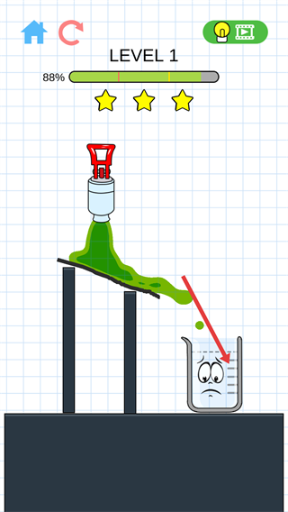 2、在關(guān)卡中,根據(jù)液體和燒杯的位置,用畫筆靈活繪制路線,引導(dǎo)水流走向。