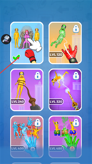1、進入游戲后,選擇帶有綠色對勾的關(guān)卡卡片,即可進入對應(yīng)關(guān)卡開始挑戰(zhàn)。