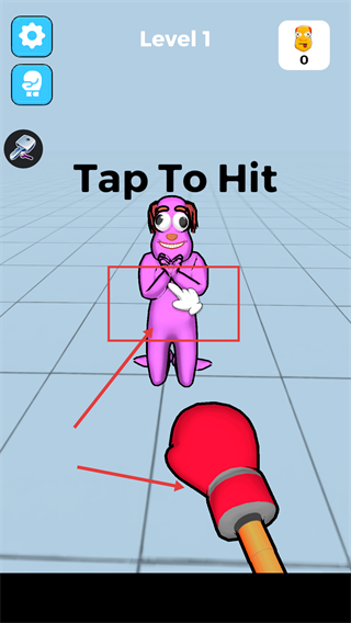 2、在【Level-1】中,根據(jù)提示點擊紫色角色,使用紅色拳擊手套進行擊打。