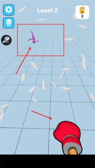 3、到【Level-2】時,面對長有白色翅膀的紫色角色,繼續(xù)用紅色拳擊手套擊打,推進關(guān)卡。