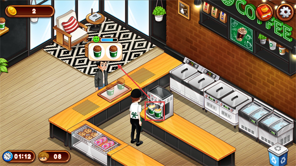 3、各式各樣的咖啡飲品與美食,玩家可根據(jù)不同顧客需求,制作獨(dú)一無二的定制化菜品,精準(zhǔn)契合多樣口味偏好。