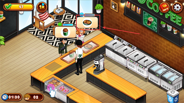 5、關(guān)卡推進(jìn)過程中顧客人數(shù)與訂單量逐步增加,考驗(yàn)玩家反應(yīng)速度,需快速響應(yīng)需求,確??Х葟d高效運(yùn)營(yíng)。
