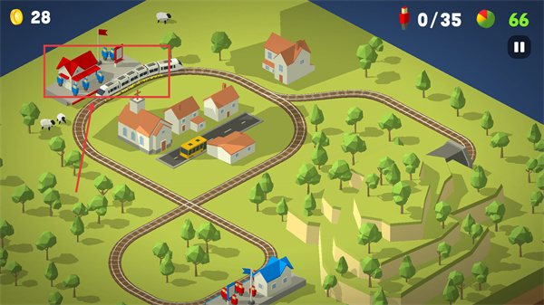 2、操控火車前往紅色車站,精準??恳宰尦丝蜕舷萝嚕⒁饣疖囆旭偮窂胶蛙囌疚恢?,確保高效完成載客任務(wù)。