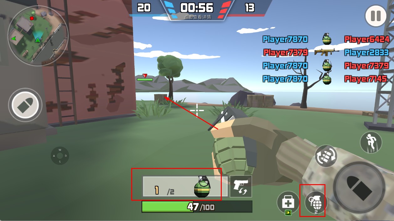 3、遇集群敵人,使用【手雷】道具,瞄準(zhǔn)后投擲,造成范圍傷害,提升擊殺效率。