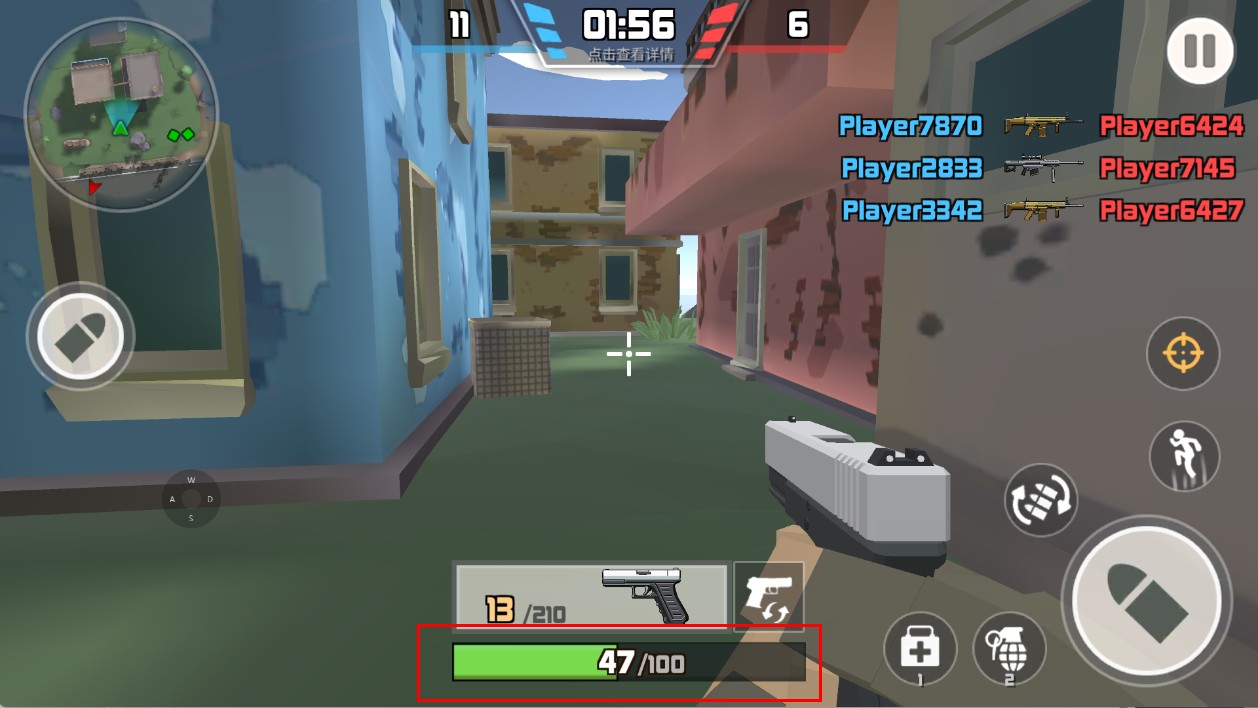 1、戰(zhàn)斗時(shí)留意血量【47/100】,及時(shí)找掩體規(guī)避傷害,維持生存優(yōu)勢。