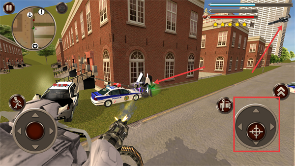 3、戰(zhàn)斗時(shí)使用右側(cè)射擊按鈕精準(zhǔn)打擊敵人,面對(duì)警車等敵人,利用掩體和武器優(yōu)勢(shì)快速消滅目標(biāo),積累戰(zhàn)斗經(jīng)驗(yàn)。