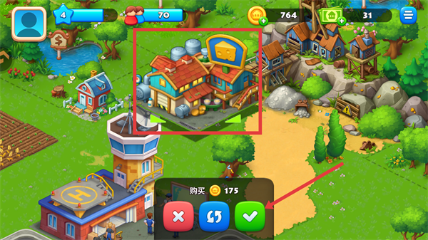 2、在地圖上找到乳品廠建造位置,點(diǎn)擊綠色對(duì)勾確認(rèn)購(gòu)買(mǎi),將其安置好,就能開(kāi)啟生產(chǎn)啦。
