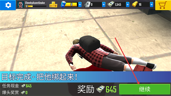 4、任務(wù)完成后點(diǎn)擊“繼續(xù)”,獲取任務(wù)現(xiàn)金和獎(jiǎng)勵(lì),積累資源以解鎖更多狙擊任務(wù)和武器升級(jí)。