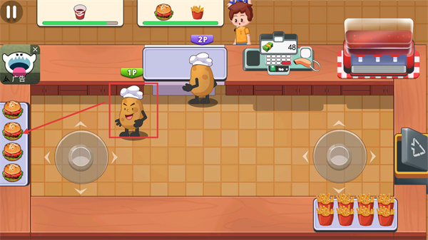 2、1P角色負(fù)責(zé)漢堡類訂單,及時(shí)取餐并送達(dá),確保訂單進(jìn)度條正常推進(jìn),滿足顧客需求。