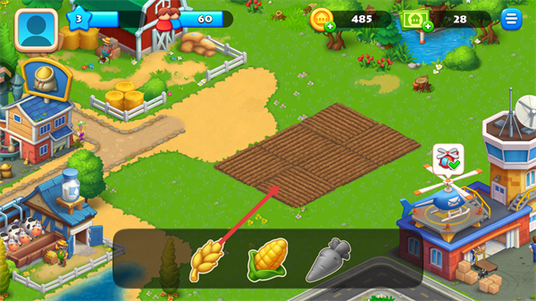 1、進入游戲后先解鎖【農(nóng)田】區(qū)域,再選擇【小麥種子】拖入耕地完成種植,為后續(xù)加工和訂單任務(wù)儲備基礎(chǔ)物資。