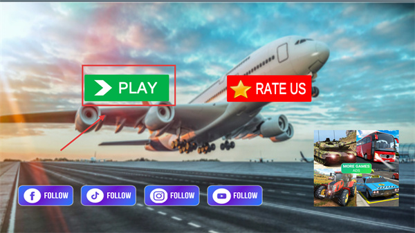 1、進入游戲界面后,先點擊【PLAY】按鈕開啟游戲,同時可通過【FOLLOW】類按鈕關(guān)注官方獲取更多資訊。