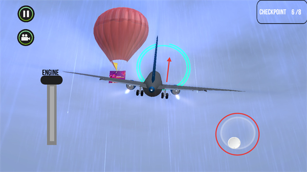 3、操控飛機(jī)向熱氣球方向行進(jìn),保持處于綠色環(huán)型范圍內(nèi)以推進(jìn)關(guān)卡進(jìn)度。