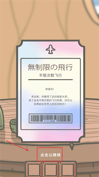 1、獲得【無制限飛行-不限次數(shù)飛行】獎勵后,點擊“點擊以繼續(xù)”按鈕關閉提示,即可解鎖免費任意地點飛行的權限。