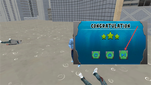 4、關卡完成后,點擊帶箭頭的按鈕進入下一關,繼續(xù)挑戰(zhàn)更復雜的城市救援場景。