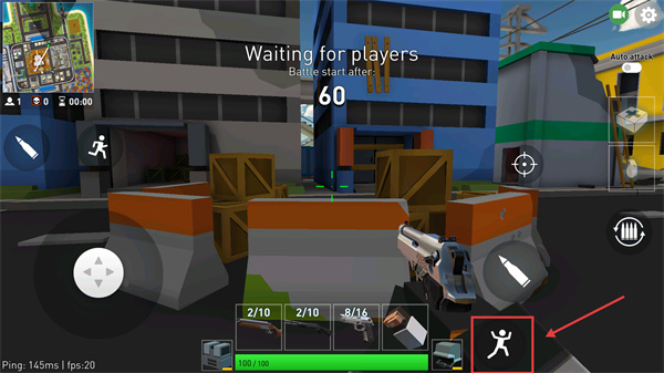 2、利用【人物移動圖標】操控角色跳躍,可提前熟悉場景地形,尋找對局開始后的有利站位。