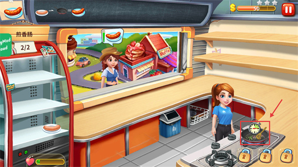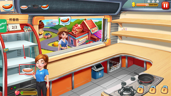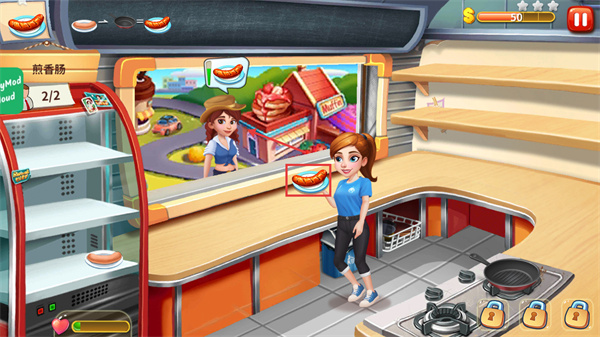 4、煎制完成后取出【熟香腸】,將其端送給對(duì)應(yīng)的顧客,完成訂單以獲取【金幣】獎(jiǎng)勵(lì)。
