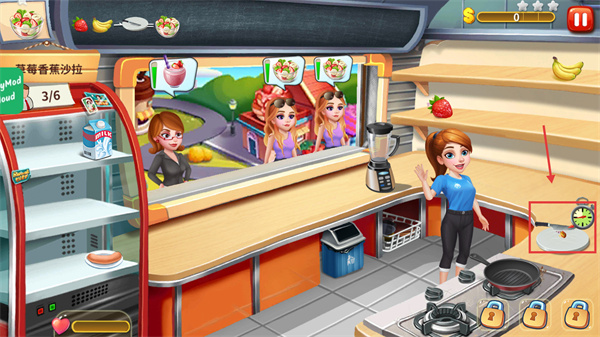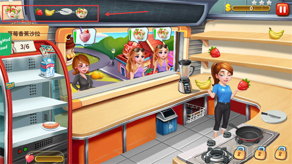 3、烹飪過(guò)程中需要關(guān)注紅框內(nèi)的客戶(hù)耐久度,當(dāng)出現(xiàn)黃色時(shí),加快速度制作菜品。