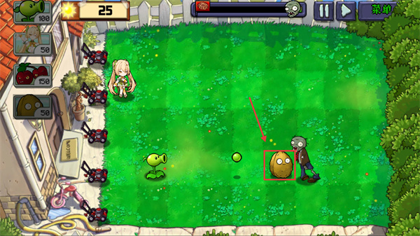 2、消耗【50】陽(yáng)光放置【土豆地雷】,將其部署在【僵尸】行進(jìn)路徑上,利用其觸發(fā)式傷害攔截近距離敵人,減輕火力壓力。