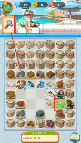 4、完成任務(wù)后點(diǎn)擊“完成”按鈕,可獲得+16金幣獎(jiǎng)勵(lì),同時(shí)推進(jìn)【愛心太陽(yáng)鏡(等級(jí)2)】的合成,積累資源解鎖更多內(nèi)容。