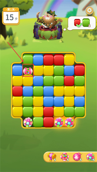 2、消耗步數(shù)使用【彩色道具】可快速消除多色方塊,推進(jìn)目標(biāo)進(jìn)度,需合理規(guī)劃道具使用時機(jī)。