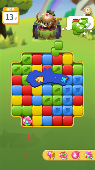 3、紅框內(nèi)道具會批量消除對應(yīng)方塊,剩余【13步】時可借助特效加速完成目標(biāo),提升通關(guān)效率。