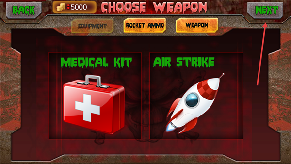 1、在【CHOOSE-WEAPON】界面,戰(zhàn)前可選擇道具,選好后點(diǎn)【NEXT】進(jìn)入戰(zhàn)斗。