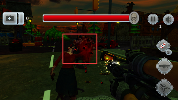 2、進(jìn)入戰(zhàn)場后,熟悉右側(cè)槍械類按鍵的操作,通過瞄準(zhǔn)標(biāo)識(shí)鎖定僵尸,準(zhǔn)備發(fā)起攻擊。