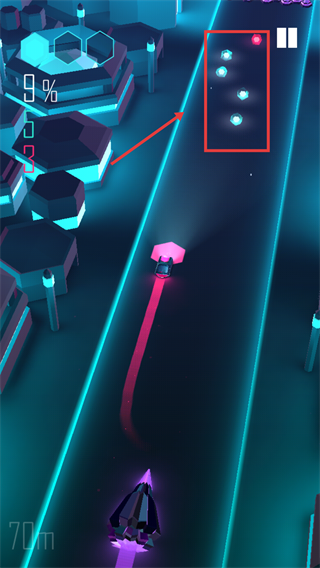 1、在賽道行駛時(shí)需跟隨節(jié)奏躲避【尖刺】障礙,通過(guò)移動(dòng)賽車(chē)位置避開(kāi)連續(xù)尖刺區(qū)域保障前進(jìn)。