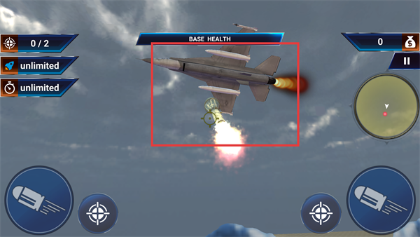 4、瞄準(zhǔn)目標(biāo)后發(fā)起攻擊,擊中戰(zhàn)斗機(jī)可使其受損,完成對(duì)目標(biāo)的攔截。