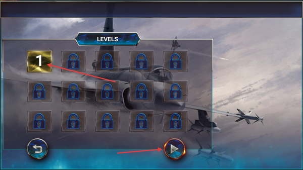 1、在【LEVELS】界面,選擇已解鎖的【1】號(hào)關(guān)卡,點(diǎn)擊下方啟動(dòng)按鈕即可進(jìn)入游戲。