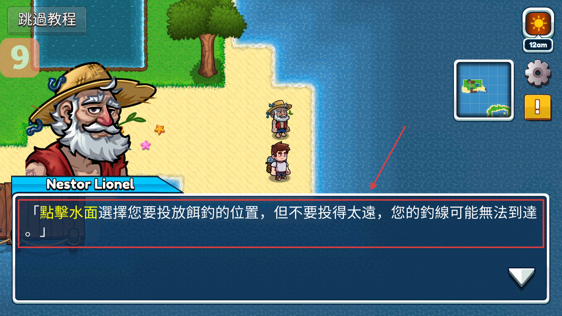 2、按照指引點擊水面指定位置完成投餌操作,這是釣魚的基礎步驟,能幫助你順利進入后續(xù)環(huán)節(jié)。