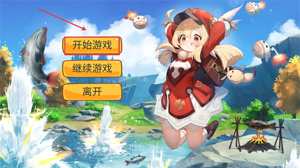 1、選擇【開始游戲】進入關(guān)卡,該角色是《原神》中的可莉,關(guān)卡核心玩法與投擲物互動相關(guān)。