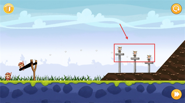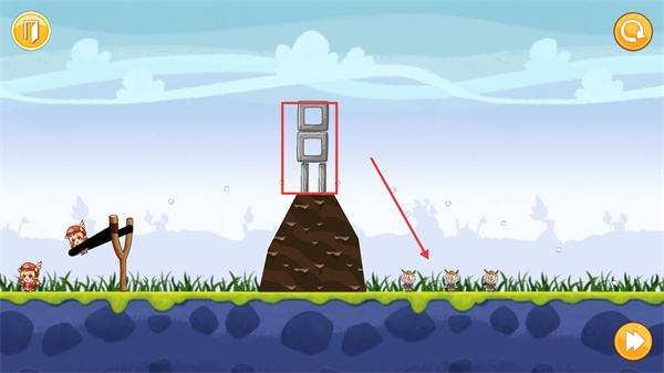 4、利用彈射裝置將結(jié)構(gòu)物擊落,破壞目標(biāo)建筑可完成關(guān)卡目標(biāo),注意控制發(fā)射角度與時機。