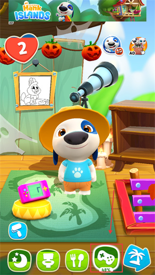 3、操作【游戲手柄圖標(biāo)】參與休閑玩法,進(jìn)度【48%】時可獲取娛樂類獎勵,豐富互動體驗。