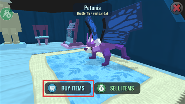 3、遇到【Petunia】時,點擊【BUY-ITEMS】按鈕,可選購對合成或冒險有幫助的道具呢。