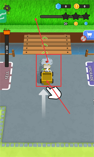 1、駕駛割草車進入草地區(qū)域,開始割草收集資源,推進游戲進程。