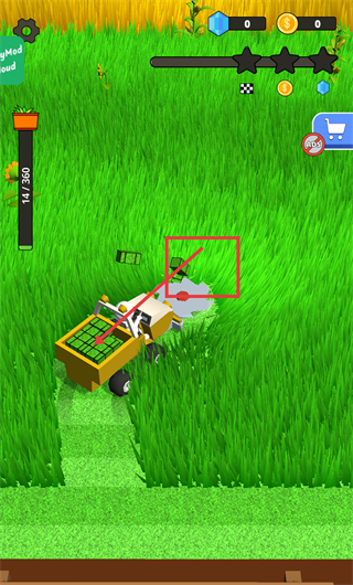 2、割草過程中收集草塊,積累資源,為后續(xù)出售和升級做準備。