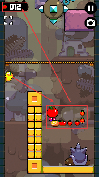 2、水果收集并非單純加分,而是關(guān)聯(lián)存檔點(diǎn)解鎖的關(guān)鍵資源,集齊全部水果可沖擊最高榮譽(yù)AnAPPleAward,為闖關(guān)增添收集與挑戰(zhàn)目標(biāo)。